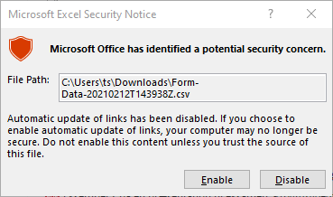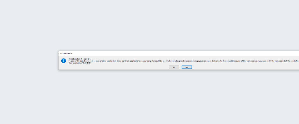 Excel does show an alert, and this is where the trust comes into play because why wouldn’t the editor accept the warning and continue.